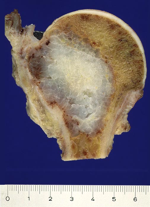 reicht makroskopisch bis an die Kortikalis heran, die bogenförmig